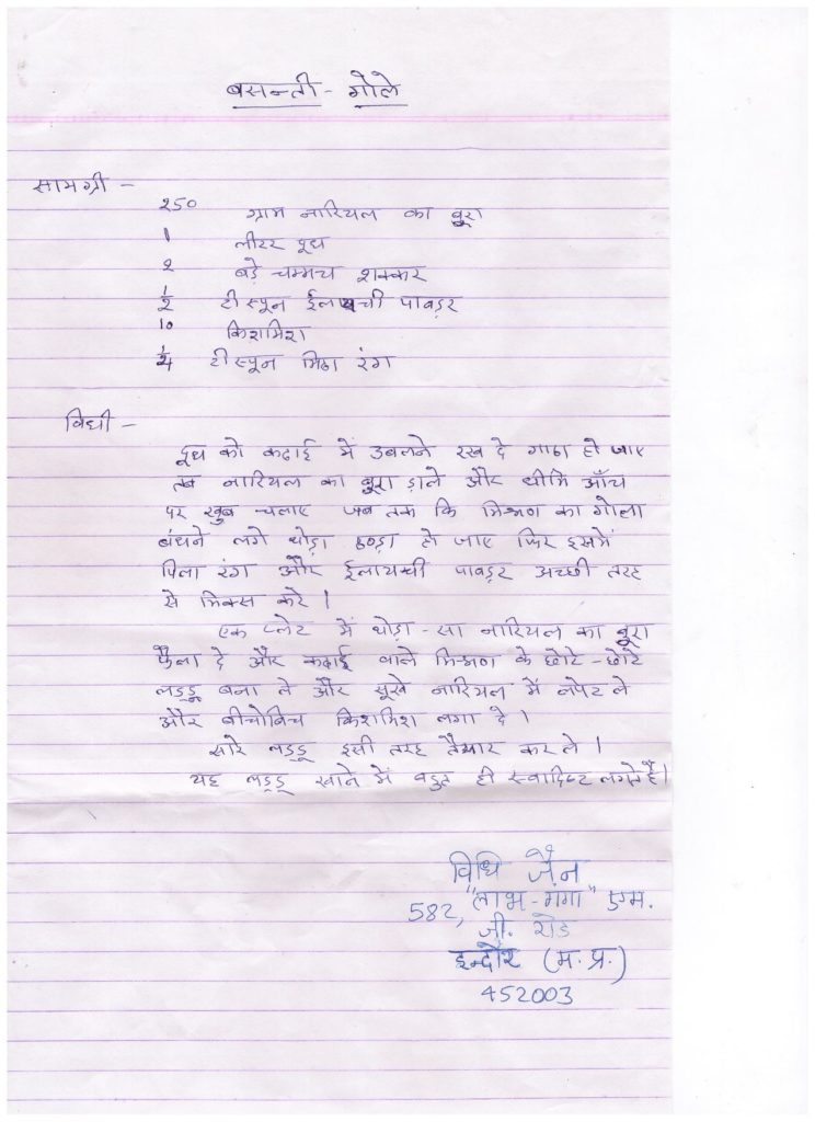 by: VIDHI JAIN city: INDORE in Alpahar Desiccated Coconut Powder- (अल्पाहार नारियल पाउडर)