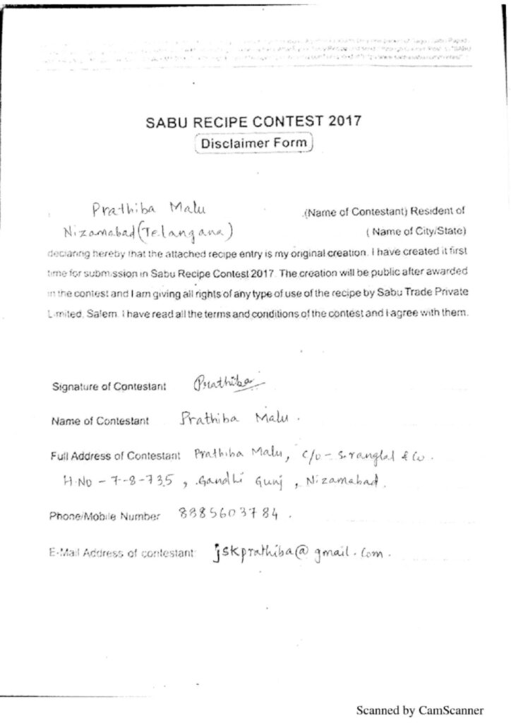 Recipe Received Through Email. Pincode Not Mentioned. Files: