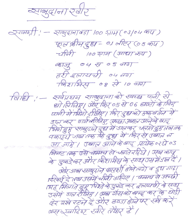 by: ADITI GUPTA city: DHAR in Sachasabu Agmark Tapioca Sago- (साचासाबू चक्र साबूदाना) SABUDANA KHEER 28 / 60 Rating Cooking Time: 1.30-2 hour Ready In: 1.30-2 hour INGREDIENTS File Attached Procedure: File Attached Notes: Files: PREVIOUS NEXT